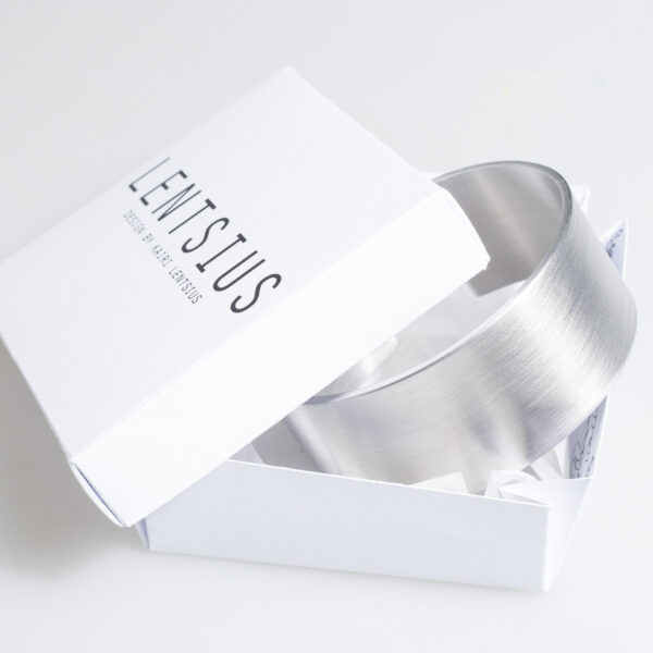 Vormi, tehnoloogiate ja ebatraditsiooniliste materjalide kombineerimine annab Lentsiuse ehetele erilise isikupära ja silmapaistvuse. Metallitööstuse jääkide taaskasutamine lisab ehetele pikaajalise vastupidavuse, luues seeläbi tasakaalu looduse väärtustamise ja skandinaavialikult lihtsa ja puhta stiili vahel. Alumiinium on mugav materjal, mis ei vaja eraldi hooldust.